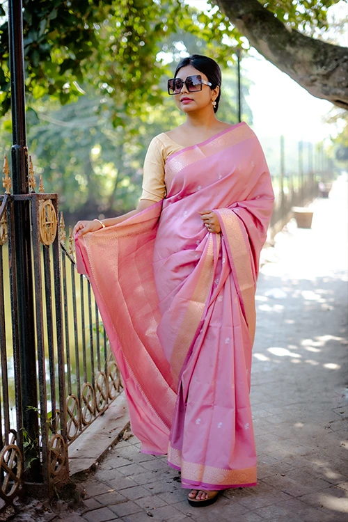 - Golden Zari border & pallu