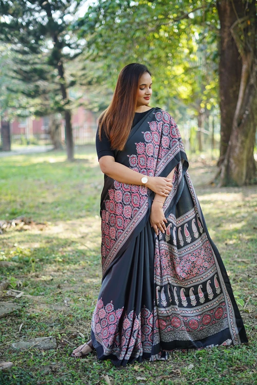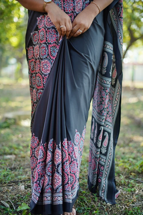 MIDNIGHT: A Satin Modal Silk Saree