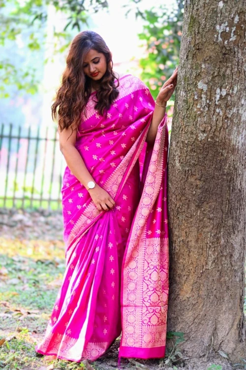 PANKHURI: A Pink Katan Silk Saree